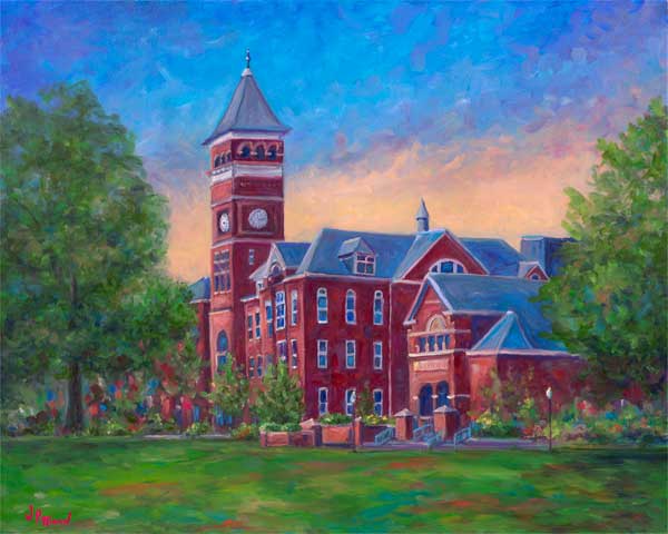 Iconic Tillman Hall on the Campus of Clemson University in South Carolina. Oil painting on Canvas by Asheville Artist Jeff Pittman in the River Arts Disrtict.