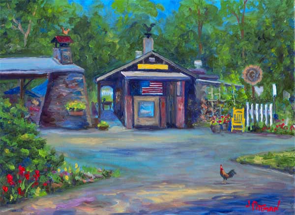 Hubba Hubba Smokehouse in Flat Rock North Carolina. Oil painting and prints by Asheville Artist Jeff Pittman.