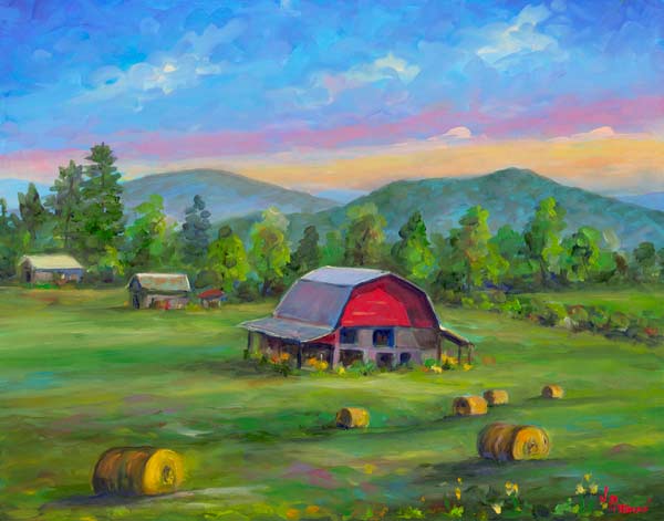 Hay Bales and Red Barn on Cane Creek Road in Fairview, NC.