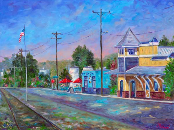 View of the Historic Hendersonville Train Depot and White Duck Taco.