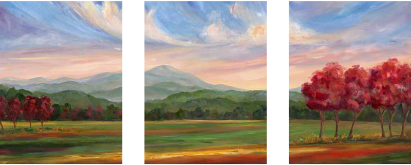 View towards Mt. Pisgah from just south of Asheville in early autumn, North Carolina. Triptych on Canvas or Paper.
