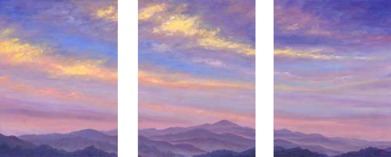 Colorful clouds sweeping over Mt Pisgah south west of Asheville, NC. Triptych on Canvas or Paper.